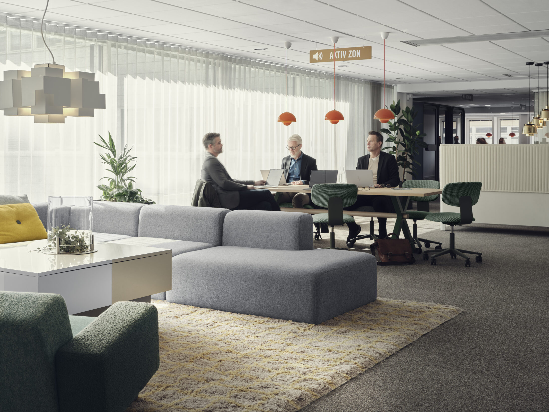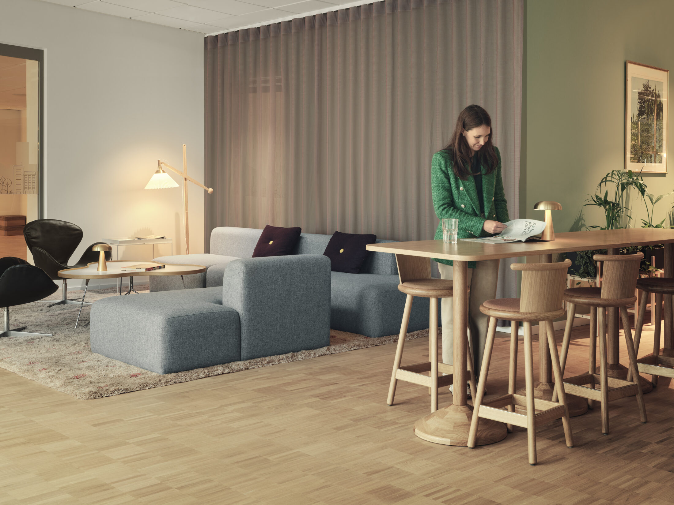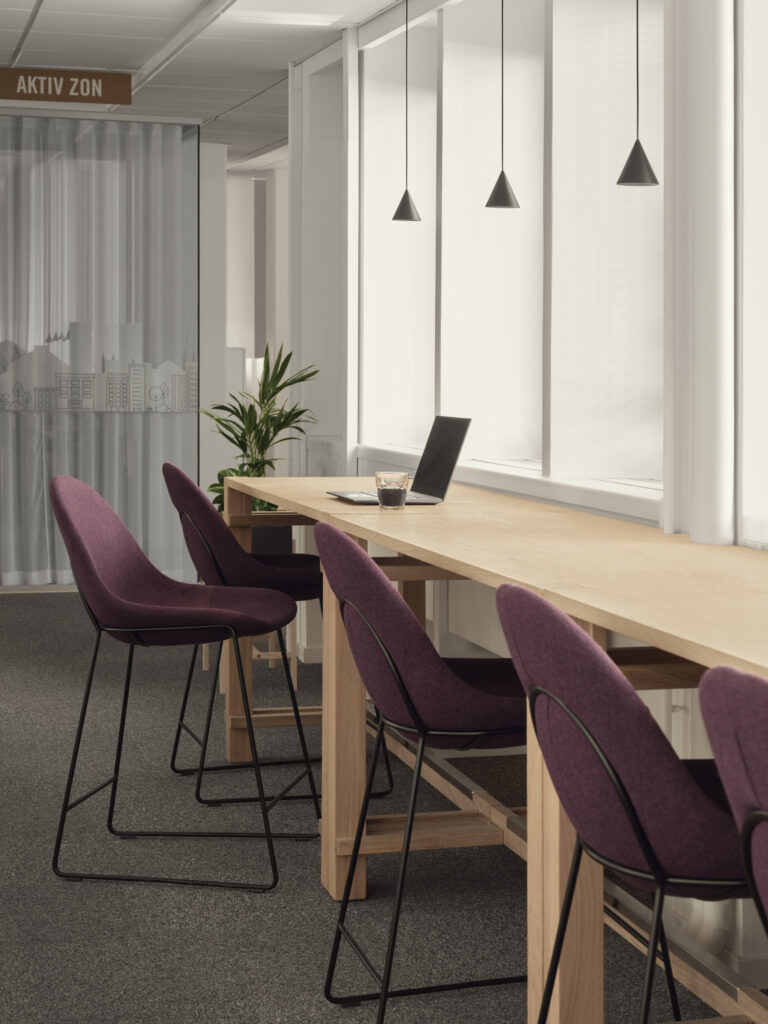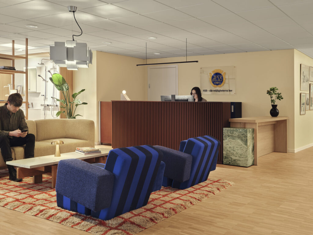 För att finnas närmare tillhands för sina kunder och de ca 600 bostadsrättsföreningarna beslutade HSB Stockholm att lämna huvudkontoret på Kungsholmen och istället skapa fyra baskontor, med två nya i Solna och Hammarby sjöstad. Gestaltningskonceptet "Hemma hos HSB" grundas i HSBs devis “HSB- där möjligheterna bor” och gestaltar upplevelsen att öppna dörren hem till HSB Stockholm, en likvärdig upplevelse oavsett kontor. Som för varje hem skapas förutsättningarna av den byggnad och rum som vi befinner oss i och lokalens egna karaktär blir utgångspunkten. I Solna har HSB sitt största baskontor, i ett kontorshus från 60-talet.