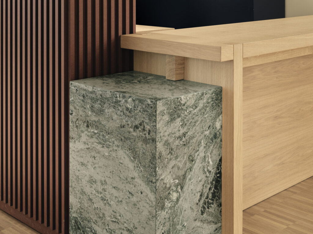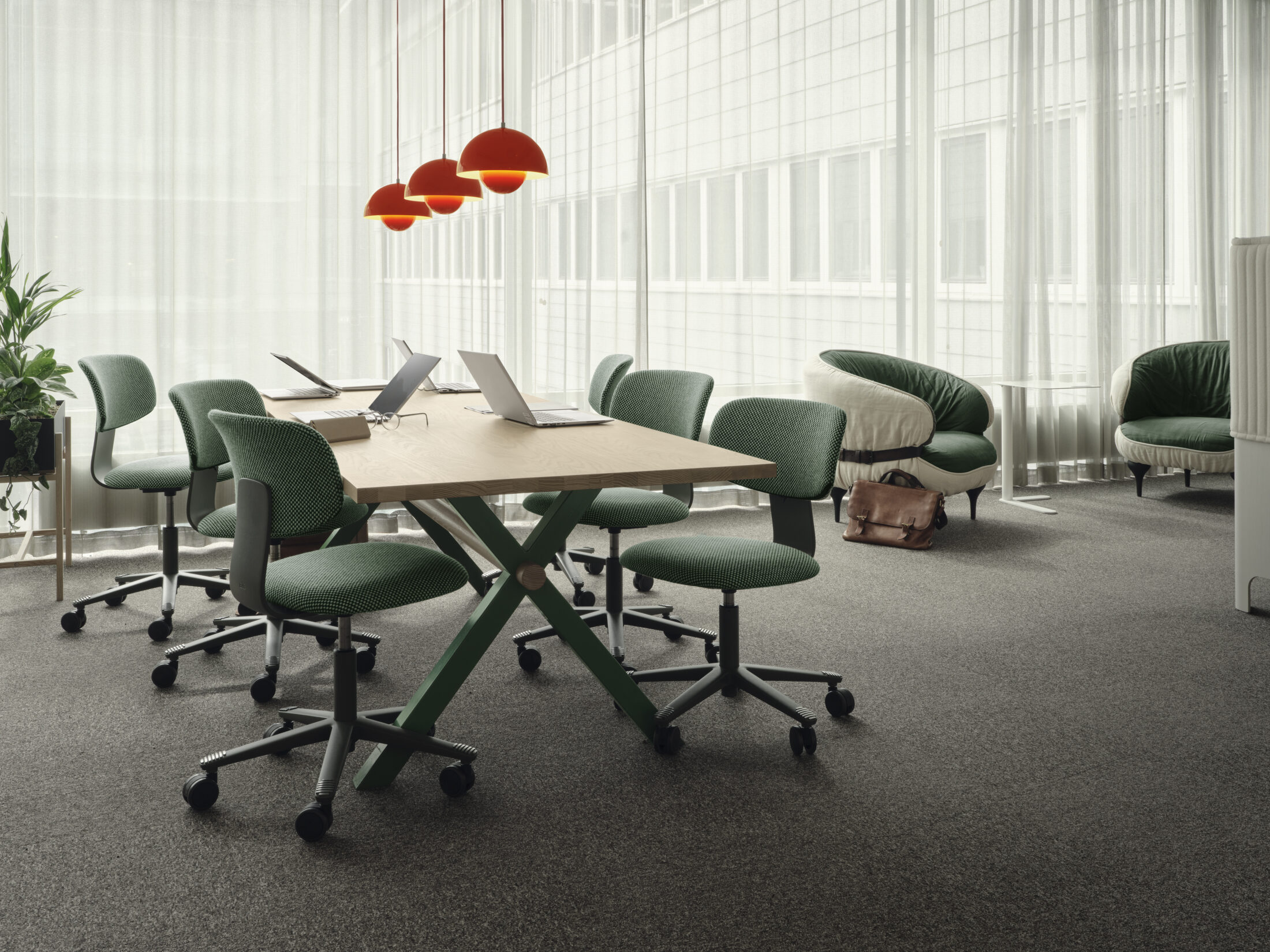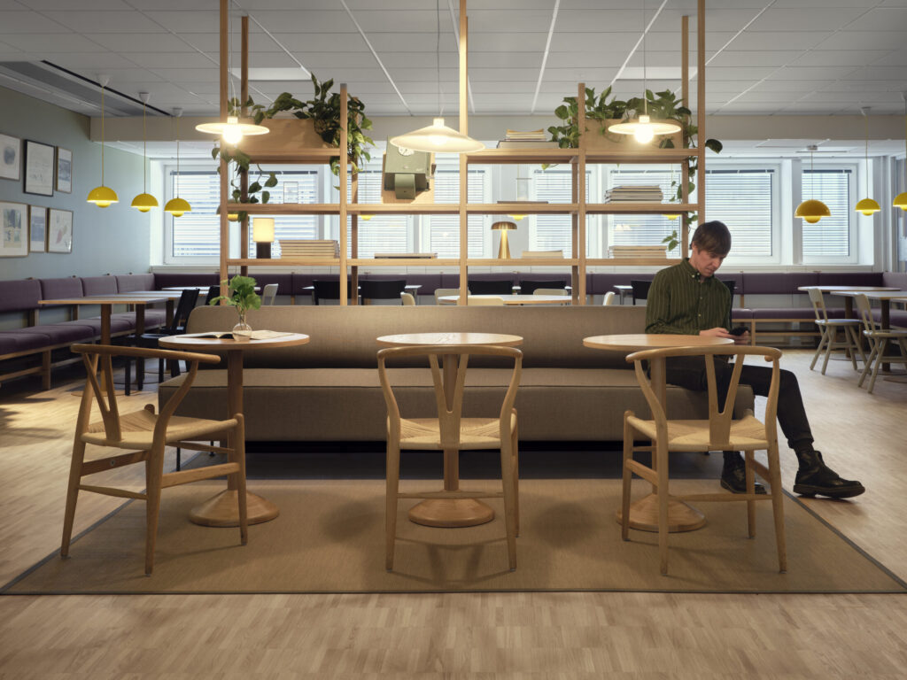 HSB Stockholm var tydliga med att de ville integrera hållbarhet i projektet. Material och fast inredning har bevarats och återbrukats inom lokalen. Stort fokus har lagts på återbruk av HSBs befintliga möbler och ca 70% är återbrukat i Solna kontoret. Återbrukad lös inredning i Solna-kontoret stod för besparing av cirka 61 157 kg CO2-ekvivalenter.