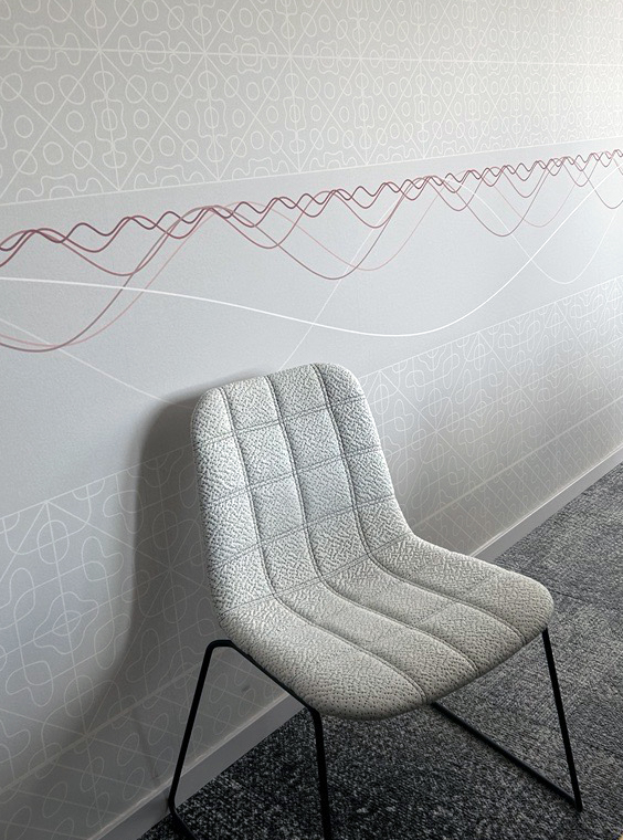 TriOptima värdesätter fantasi, lekfullhet, nyfikenhet och fascineras av matematisk problemlösning. Det blev utgångspunkten för ett inredningskoncept och en hyllning till alla tänkbara mysterier i universum. Mörk materia, Pi, tid, medvetande, mycel, gravitation och kvantsammanflätning för att bara nämna några. Unik arkitektur med en takhöjd som på sina ställen är upp till fyra meter, K-märkta betongelement och en förunderlig utsikt över Stockholms innerstad blev förutsättningarna för ett nytt kontor för TriOptimas medarbetare. I stort sett all lös inredning återbrukades och för att knyta ihop befintliga möbler med det nya konceptet blev specialdesignade tapeter, konst och väl valda detaljer knepet för att limma ihop alla delar till en helhet, där varje enskild yta blir unik.